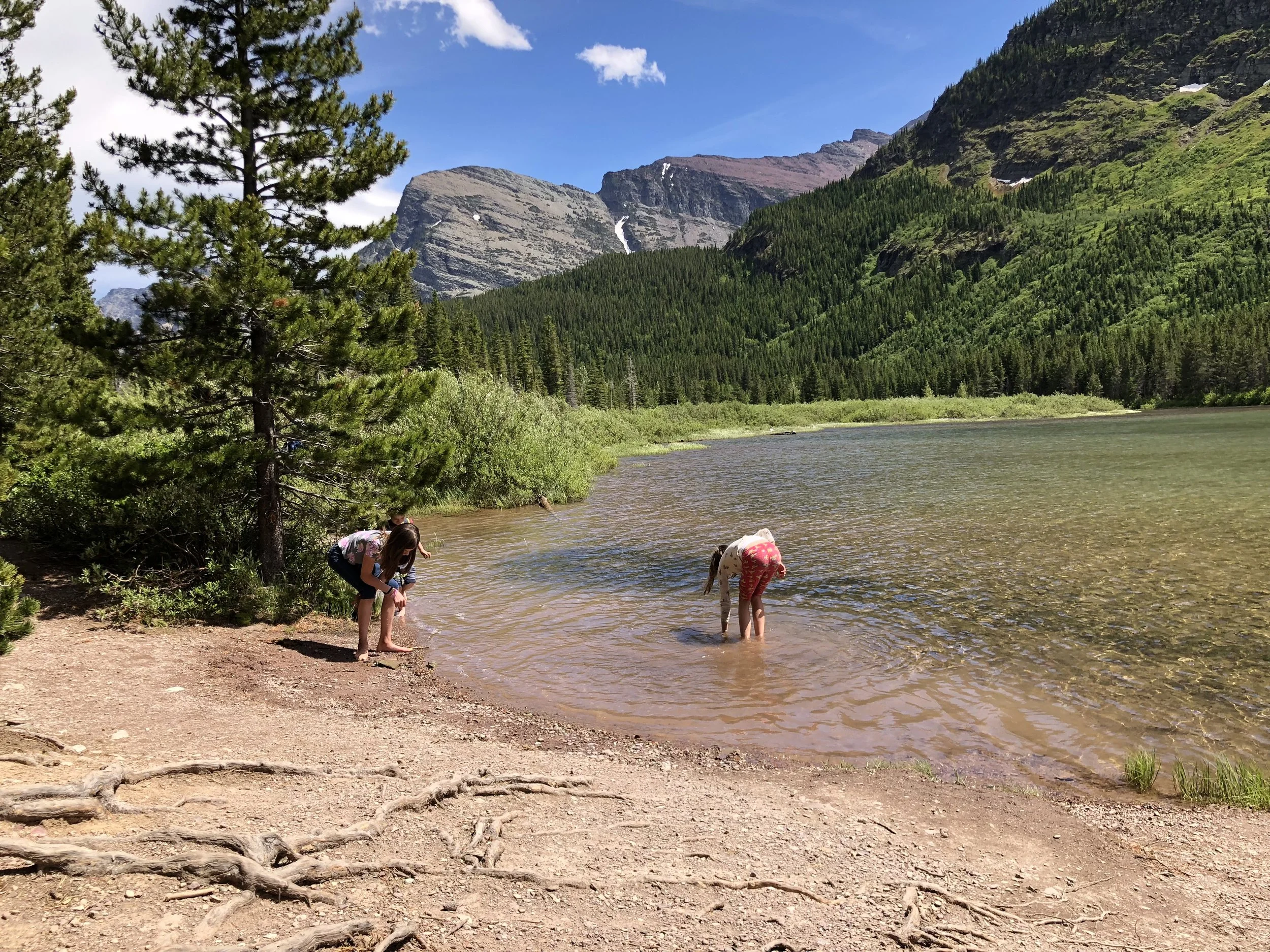 For our first full day in Glacier we decided to take the Swift Current Pass Trailhead to Red Rock Falls (trail guide here). The hike is just over 4 miles round trip with very little elevation change. It was very doable for our kids (ages 11, 11, and 4) and the scenery was phenomenal. Within the first 15 minutes or so you will pass an off shoot to Fishercap Lake. It’s a 2 minute walk to the lake and provides prime moose viewing opportunities. We ended up stoping at the lake three times during our stay. We always missed the moose but people spotted them at Fishercap several times a day throughout our stay. There is an "animal sighting" list in the Swift Current Motor Lodge where people record the what, when and where of their animal sightings which is fun to check out.